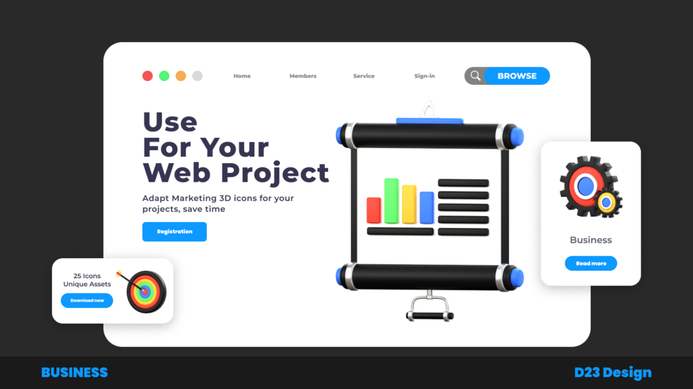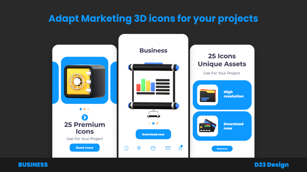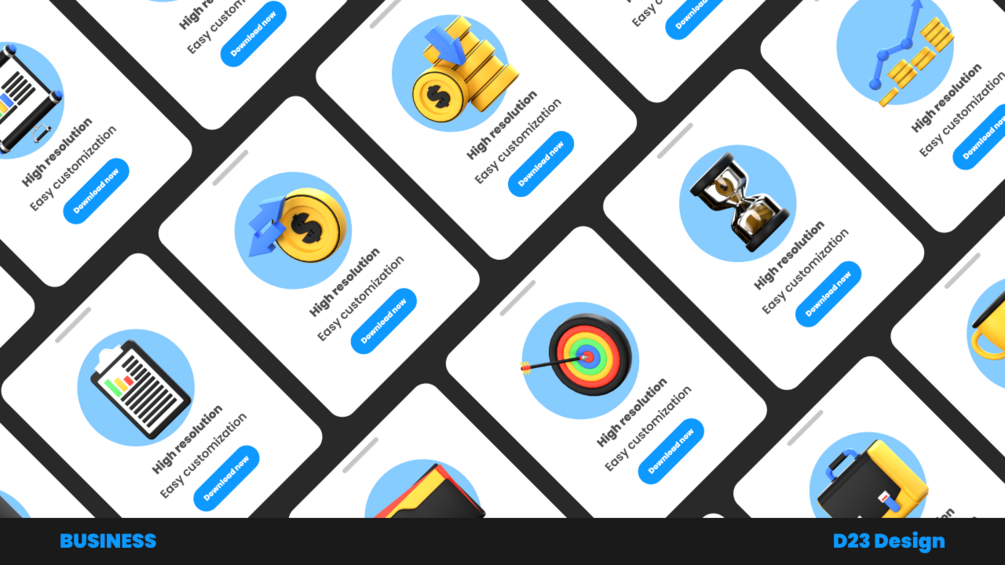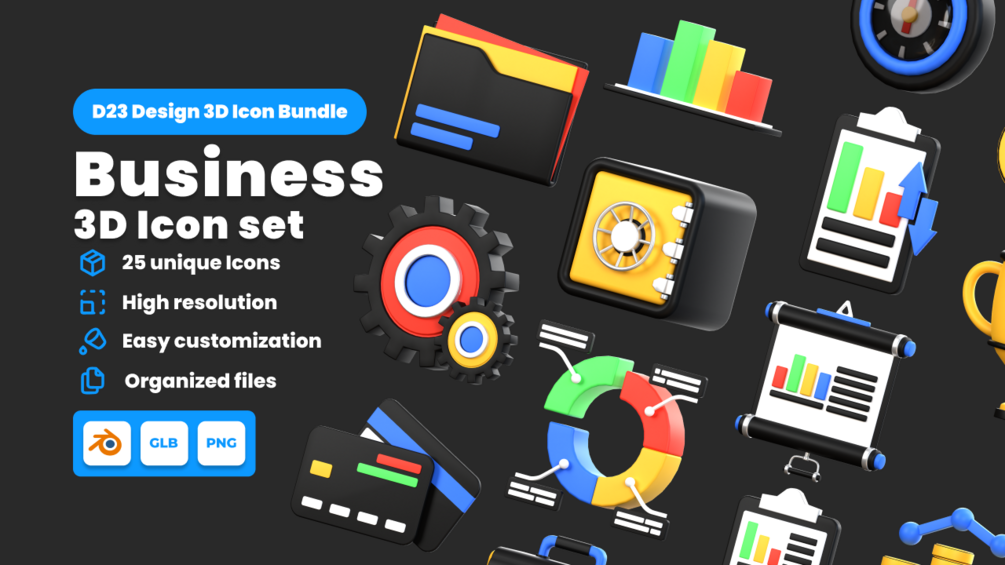 Elevate your designs with this collection of 25 high-quality 3D business icons. Perfect for web design, app development, presentations, and more.