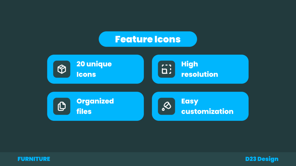 • Variety: The set includes a wide variety of furniture icons, covering a range of styles and furniture types.